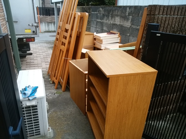 本日は粗大ゴミ等の回収作業でした。ベッド、食器棚、チェストなど粗大ゴミ     前橋市