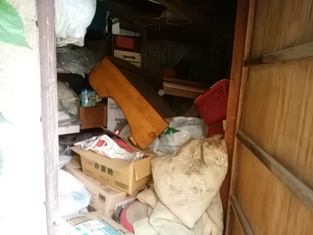 本日は庭先にある納屋(倉庫)の中とその周りに積まれた不要品やゴミ等の片付け作業です。