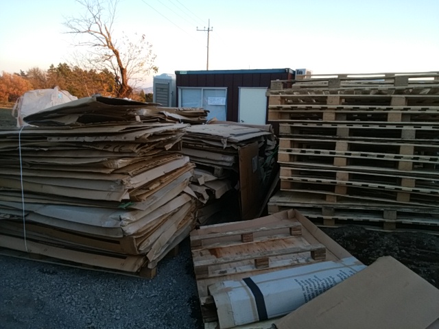 本日は太陽光パネル設置現場から排出された産業廃棄物、木材パレット、廃プラ、ダンボール、鉄くず他ゴミくず等の回収作業でした。